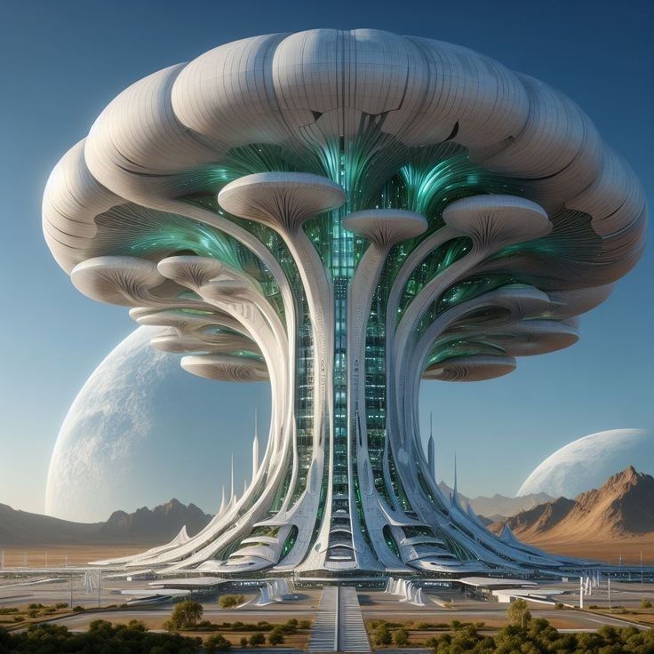 Bilder og inspirasjoner av bygninger fra andre planeter mottatt med Susanne Ertsland Askvik sin metode fra utenomjordiske sivilisasjoner.
