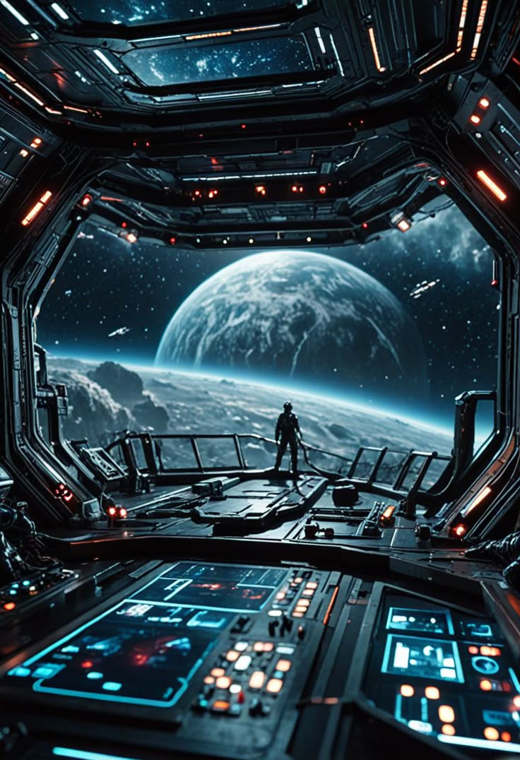 bedroom window in spaceship.
