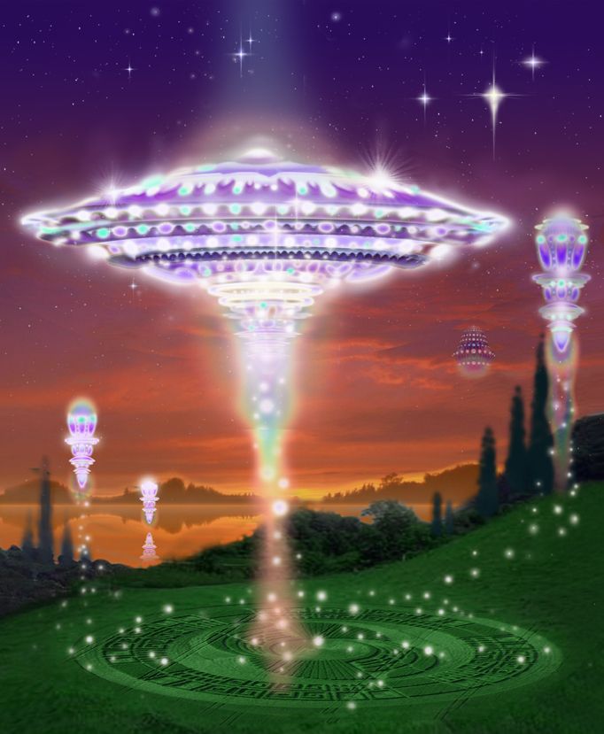 Bilder og inspirasjoner av forskjellige romskip Susanne Ertsland Askvik sin metode fra utenomjordiske sivilisasjoner.