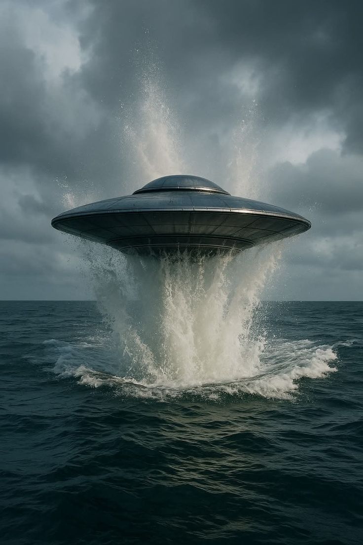 Spacecraft emerging from the sea.