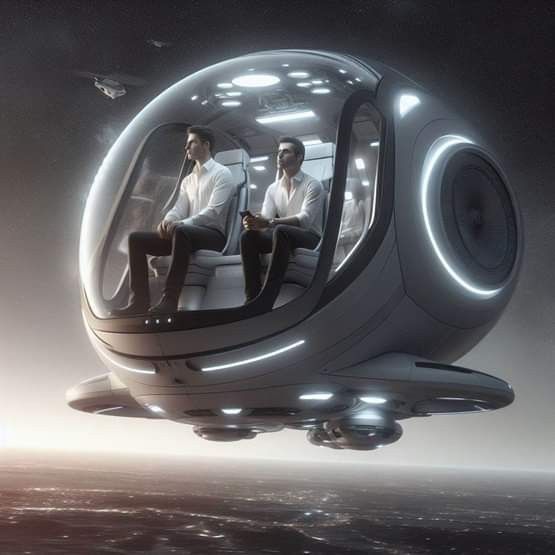 In a spaceship.