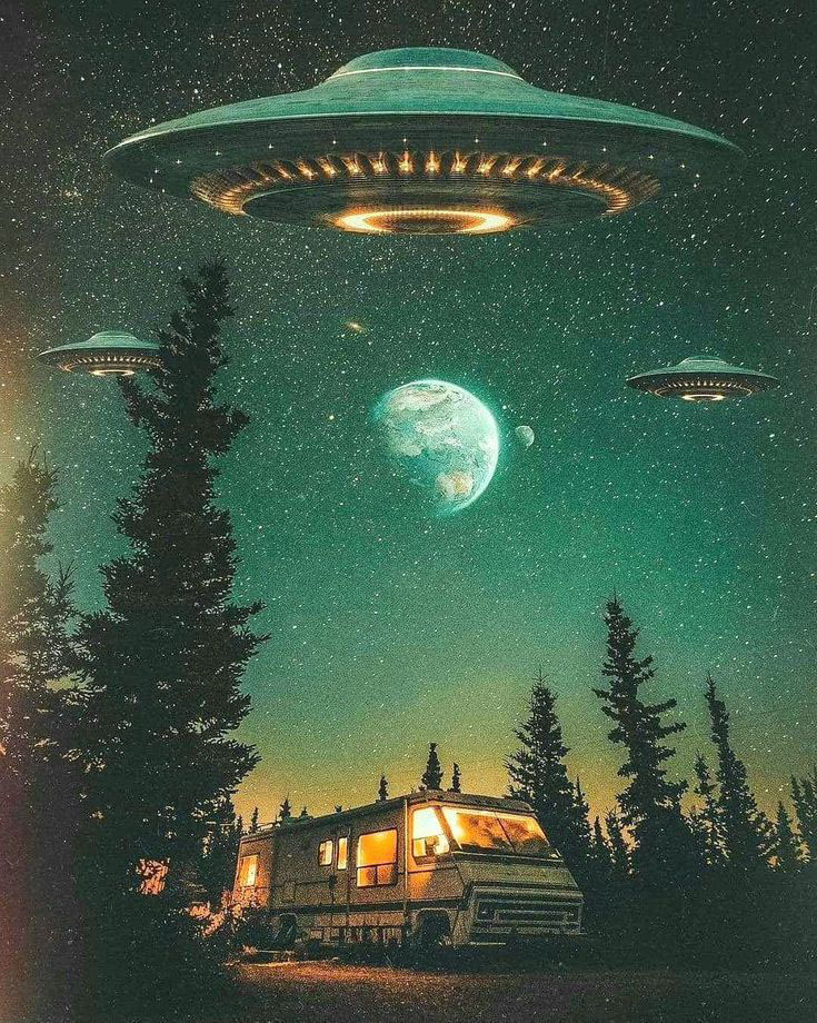 Spaceships over car.