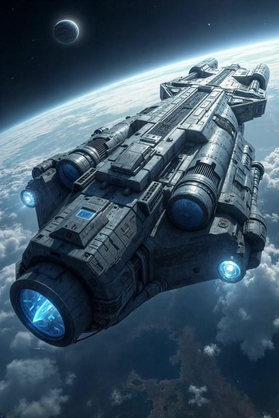 Spaceship flying.