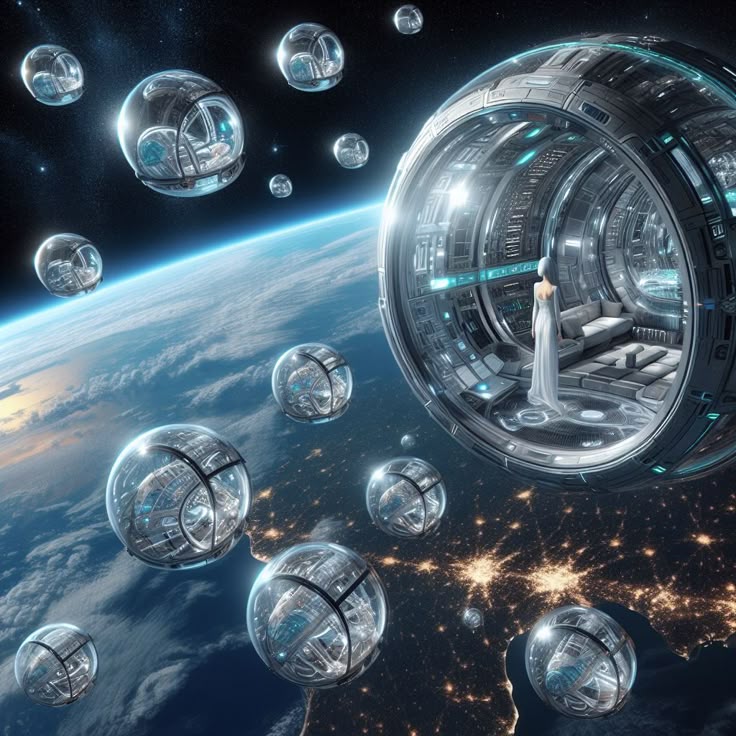 Many small spaceships in orbit.