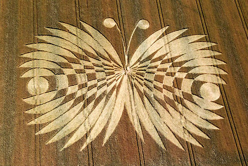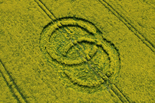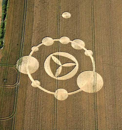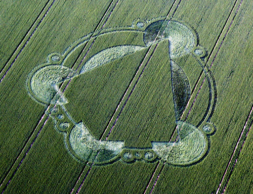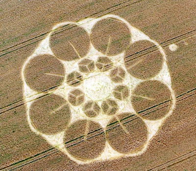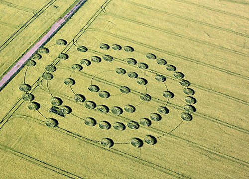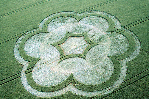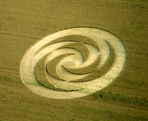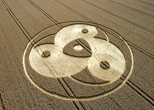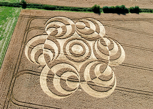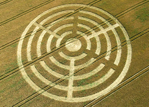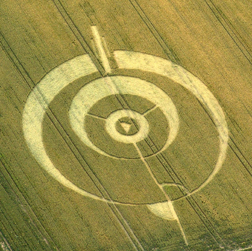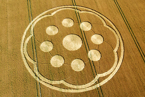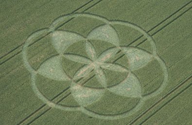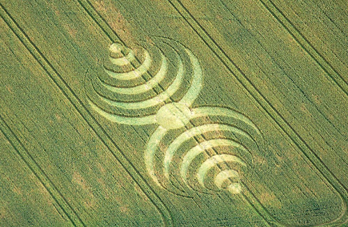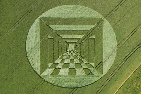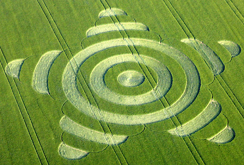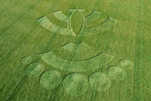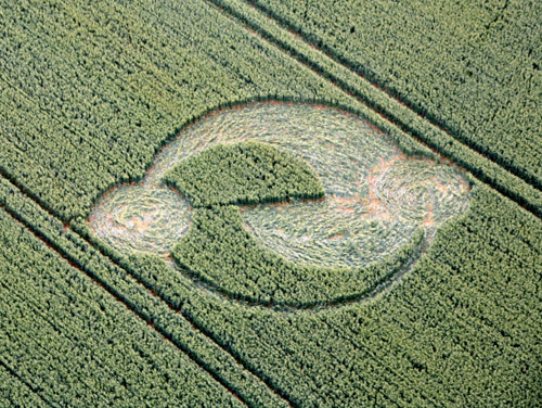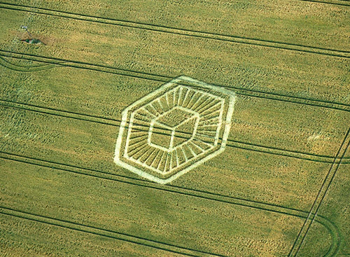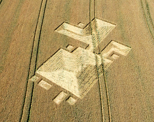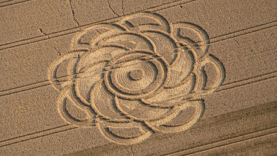 This pictures shows marks in cornfields generated by aliens using interdimensional technology.
